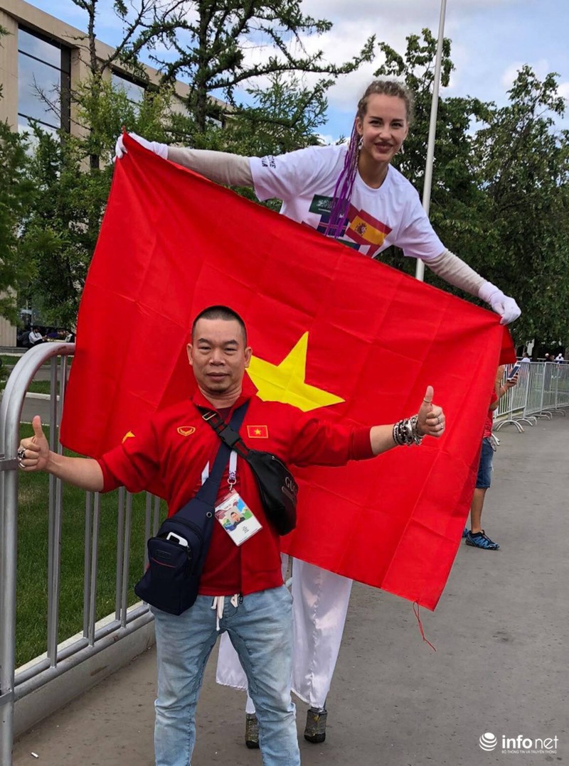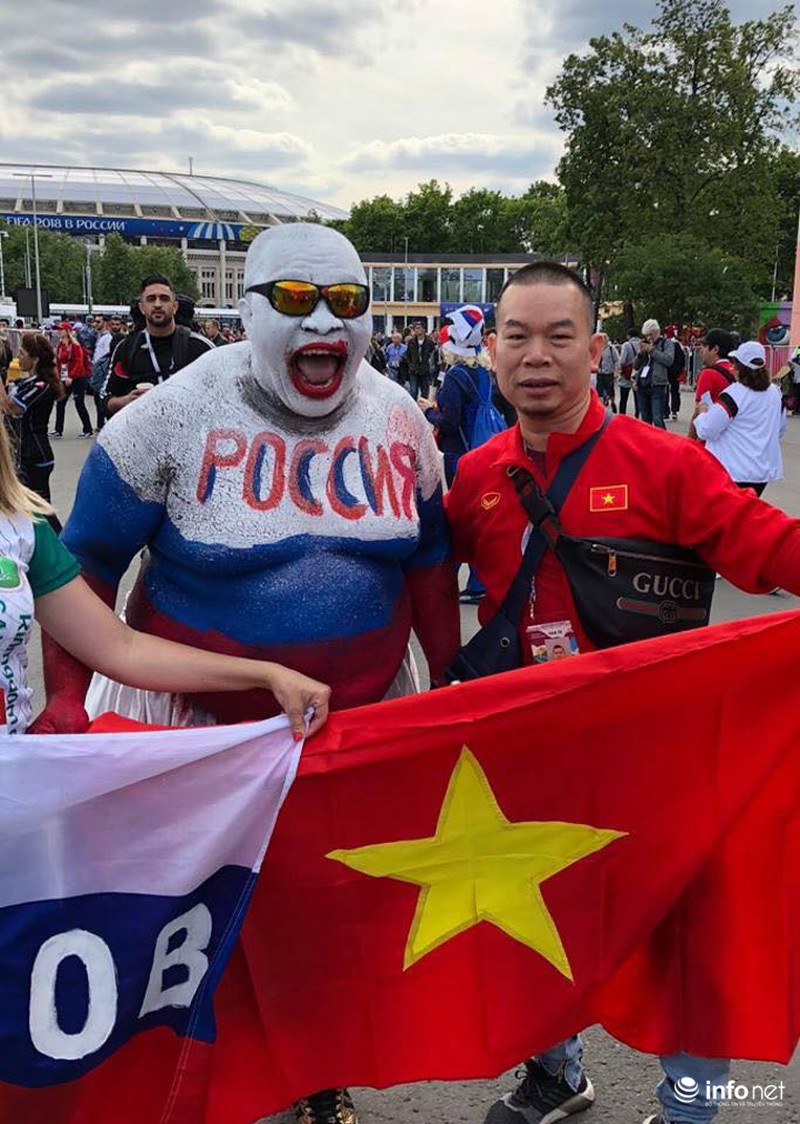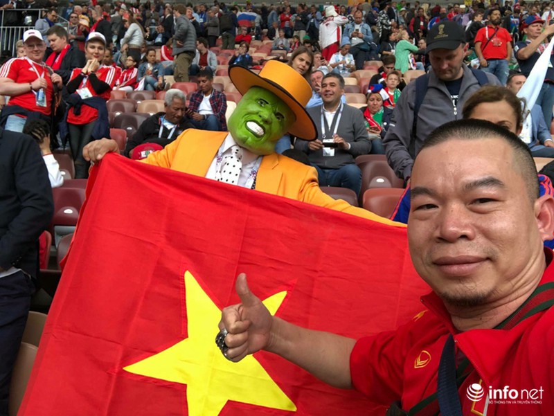 Trong số những Cổ động viên bóng đá Việt Nam có mặt tại sân vận động Luzniki Moscow, anh Hải Đường gây ấn tượng khi mang hình ảnh Tổ Quốc Việt Nam tới ngày hội bóng đá lớn nhất hành tinh.