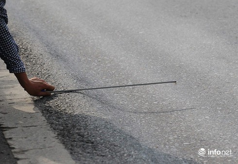Mặt đường Quốc lộ 5 có nhiều đoạn lún sâu quá 2,5cm, đặc biệt là đoạn qua Thành phố Hải Dương. |