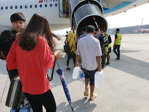 Sáng ngày 20/1, rất nhiều người dùng trên mạng xã hội Facebook tỏ ra bất ngờ khi bắt gặp những bức ảnh do một hành khách đang đi chuyến bay của hãng Bamboo Airways chụp một hành khách khác đang boarding (lên tàu bay) mà vẫn xách theo người 2 can nhựa màu trắng bên trong chứa chất lỏng.