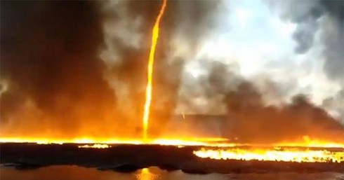 Vòi rồng lửa bốc lên cao hàng chục mét gần Vanderhoof, British Columbia. |