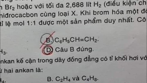 Được biết, đề thi này của một giáo viên dạy Hóa tại Hải Dương. "Trong trường hợp này học sinh chọn cả hai đáp án B và D mới được coi là đáp án đúng. Với bài thi này, ngoài việc học sinh phải đáp ứng được chuẩn về mặt kiến thức thì phải vận dụng linh hoạt trong kỹ năng mới được điểm chứ không phải cứ tính toán xong là "cắm mặt" vào khoanh đáp án", giáo viên này cho hay.