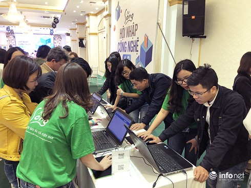 Nhiều người háo hứctrải nghiệm tính năng của iPub- nền tảng công nghệ xuất bản điện tử đầu tiên tại Việt Nam. |