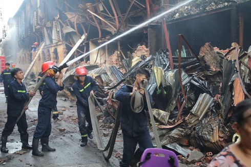 Lực lượng PCCC đến hiện trường dập lửa trong vụ cháy Công ty Rạng Đông. |
