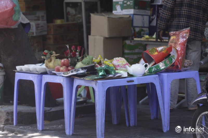 Theo ghi nhận của PV Infonet, ngay từ sáng sớm ngày 14/8 rất nhiều người đã sắm sửa mũ áo, giày dép, tiền vàng... để cúng. |