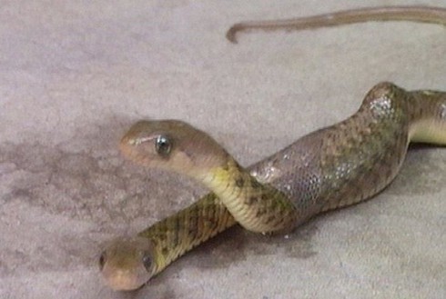 Rắn 2 đầu và không có đuôi. Một gia đình tại Mỹ phát hiện được một con rắn 2 đầu hết sức đặc biệt. Điểm khác lạ của con rắn này đó chính là 2 đầu nằm ở đầu và cuối của cơ thể, nghĩa là con rắn không có đuôi và đuôi của nó cũng chính là một chiếc đầu. |