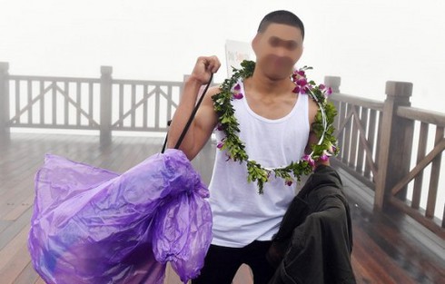 Nam thanh niên mặc áo ba lỗ check in đỉnh Fansipan trong thời tiết giá buốt gây nhiều tranh cãi những ngày qua |