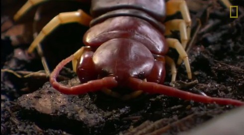 Con rết dùng cặp kìm tiêm nọc độc gây ngưng tim vào cơ thể chuột trong khu rừng Nam Mỹ và nhanh chóng hoàn thành bữa ăn.