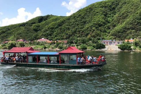 Du khách Trung Quốc có thể đi phà hoặc tàu cao tốc trên sông Áp Lục để tới tham quan các ngôi làng cũng các chốt biên giới của Triều Tiên.
