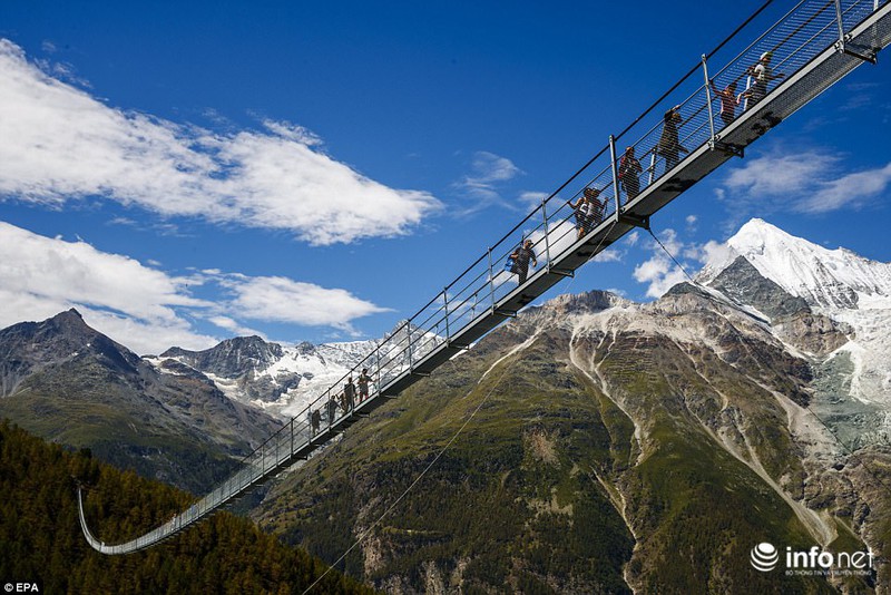 Cầu treo bộ hành dài nhất thế giới mới được khai trương ở Thuỵ Sỹ dài 494 mét, ở độ cao 85 mét nằm ở thung lũng Grabengufer gần thị trấn Zermatt.