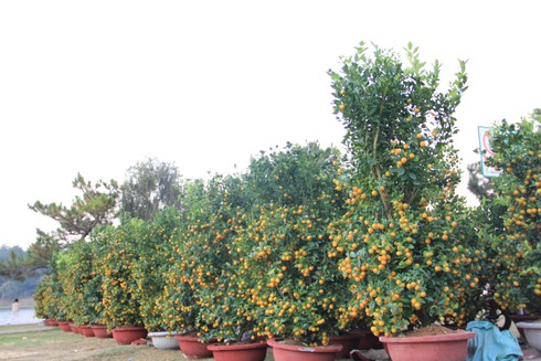 Những chậu quất lớn được bố trí theo từng dãy cực đẹp cũng khá hút khách. |
