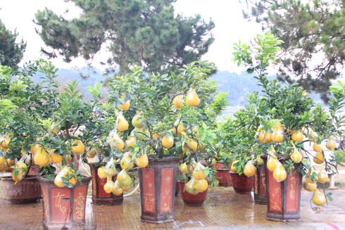 Bưởi Diễn cảnh độc, lạ vốn trồng ở miền Bắc được bày bán tại Đà Lạt. |