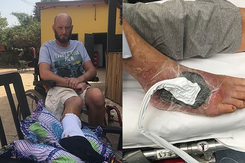 Matthew Blurton, 46 tuổi làm nghề thiết kế, không may bị côn trùng cắn vào mu bàn chân phải khi đi tình nguyện ở Gambia, Châu Phi vào tháng 12/2017. Ngay sau đó, Matthew bị sốt cao gần 40 độ C kèm theo vết phồng rộp ở chân.