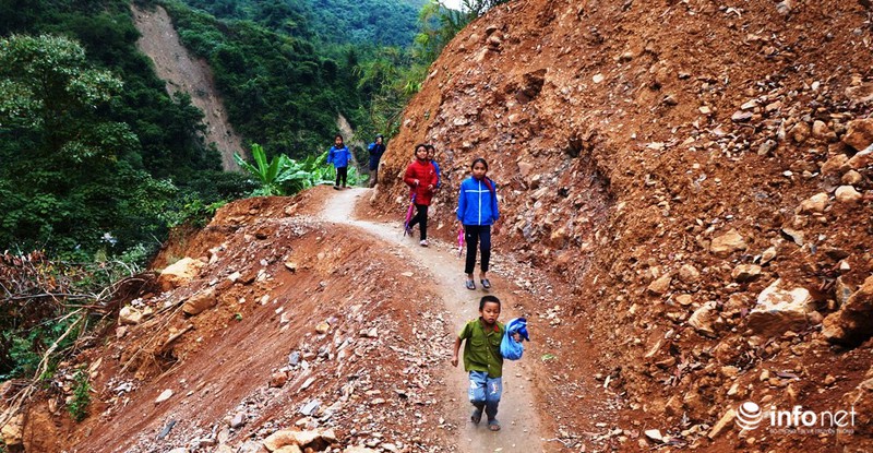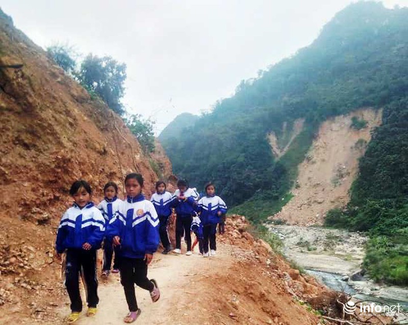 Thầy Hoàng Ngọc Tao – Phó hiệu trưởng trường Tiểu học Mường Ải (huyện Kỳ Sơn) cho biết, nhà trường có tổng số 275 học sinh, ở 6 điểm trường khác nhau. Riêng bản Xốp Xăng có 27 em học sinh thường xuyên phải đi qua con đường này để tới trường.