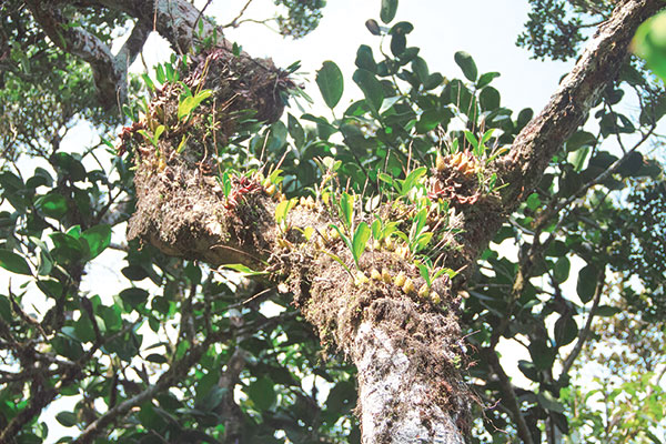 Cũng tại khu vực này có rất nhiều lan rừng sinh sống. Lan mọc chi chít quanh những thân cây lớn, bám trên cả những cành cây nhỏ, lan rơi cả trên những lối đi theo những cành cây mục… Vào độ tháng 2, tháng 3 hàng năm, trên nền xanh của cây rừng và của rêu là trăm ngàn những nhành hoa lan khoe sắc.