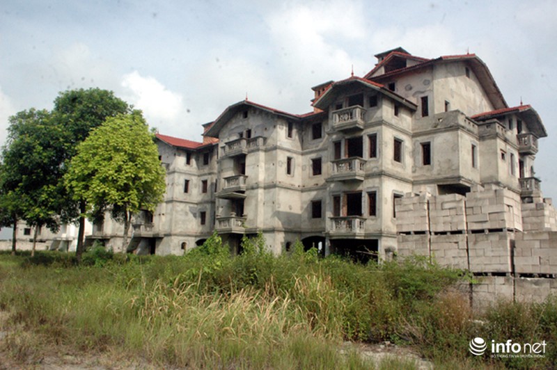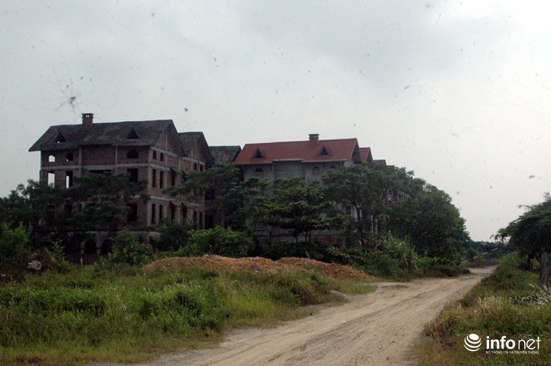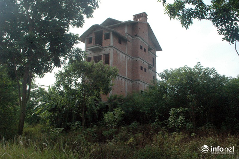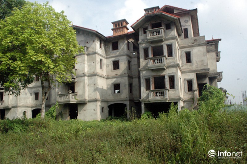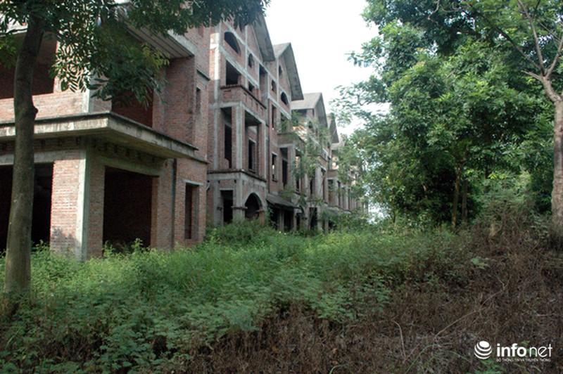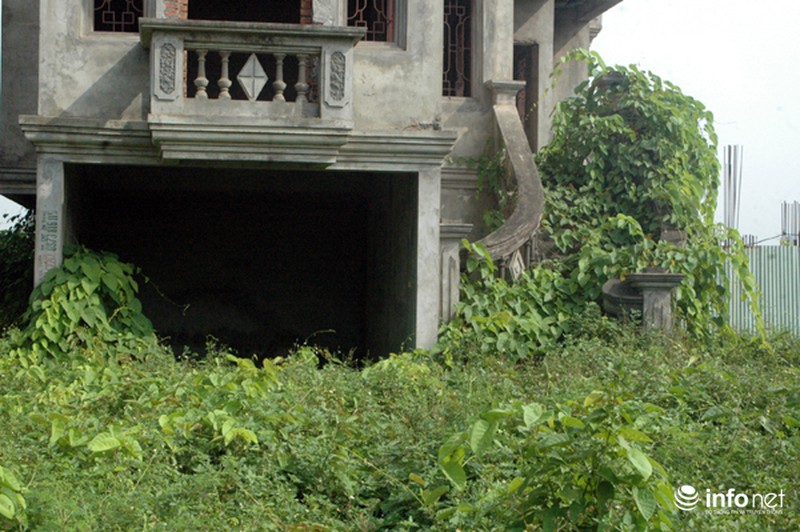 Những ngôi biệt tự xây xong phần thô cũng bị cây xanh cỏ dại bao phủ.