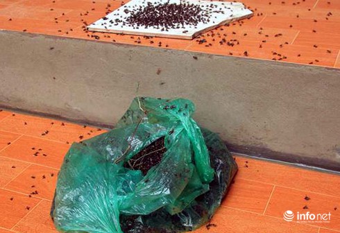 Quá bức xúc trước sự việc, bà Hoàng Thị Sỉu ( ở thôn Đông Hạ, xã Nam Sơn, huyện Sóc Sơn, TP Hà Nội) cho biết: “Ngày hôm qua 18/7, gia đình tôi đã hốt đổ đến gần 1 kg ruồi đổ đi, từ trưa đến tối lại phải hốt đổ đi một lần...".
