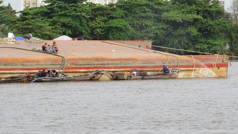 Các phương án trục vớt sà lan đang được tiến hành |