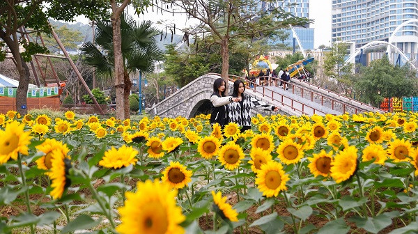 Du khách cũng sẽ được check-in thoả sức với các tiểu cảnh trang trí Tết, các mô hình mèo đáng yêu mừng năm Quý Mão, xem những phần biểu diễn sôi động trong trang phục “hoa cỏ mùa xuân” của các vũ công tại khu vườn Nhật. Hoa hướng dương - loài hoa tượng trưng cho sự lạc quan, giàu sức sống luôn hướng về phía mặt trời cũng đang nở rộ, khoe sắc rực rỡ ở Sun World Ha Long, báo hiệu một năm mới may mắn, tràn đầy năng lượng.
