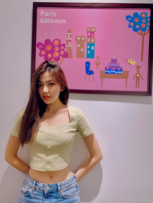 Trong tủ trang phục của mình, những chiếc croptop, quần short luôn là lựa chọn của Lương Thanh, giúp cô khoe được bụng thon gọn cùng đôi chân dài miên man của mình. |