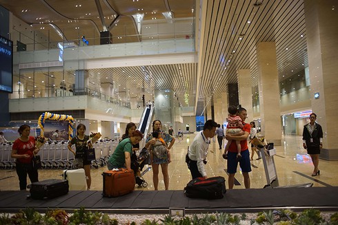 Những hành khách đầu tiên tại sân bay Cam Ranh. |