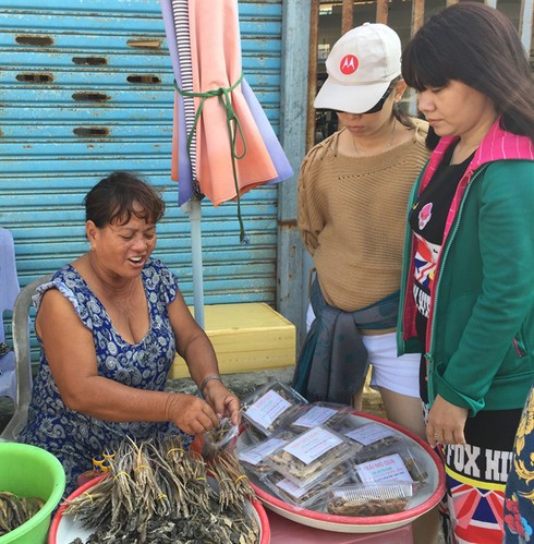 Khách du lịch mua hải long, hải mã khô ở chợ Hàm Ninh, Phú Quốc |