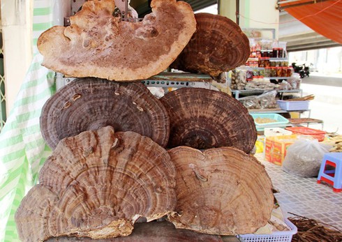 Nấm linh chi rừng bán ở "đảo ngọc". Ảnh: Việt Tường. |