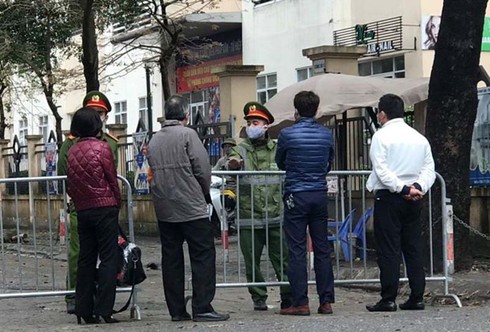 Lực lượng công an làm việc phía ngoài khu cách ly. |