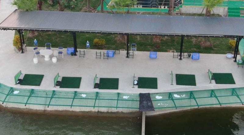 Cận cảnh sân tập golf của Shark Liên bên hồ chứa nước khi chưa tháo dỡ thảm tập.