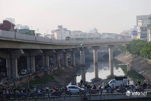 Hai đoàn tàu gặp nhau tại đoạn hồ Hoàng Cầu.