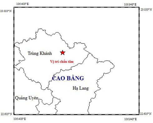 Cụ thể, Viện Vật lý Địa cầu thông tin chi tiết, vào 1h18’ (giờ GMT) ngày 25/11/2019, tức 8h18’ (giờ Hà Nội), một trận động đất có độ lớn 5.4 xảy ra tại vị trí có tọa độ (22.852 độ vĩ Bắc, 106.618 độ kinh Đông), độ sâu chấn tiêu khoảng 14 km. Động đất xảy ra tại khu vực huyện Trùng Khánh, tỉnh Cao Bằng.