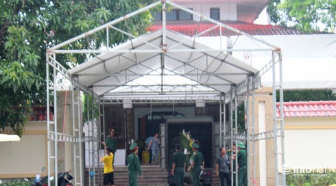 Nhà tang lễ Bệnh viện Quân y 4, nơi tổ chức Lễ viếng và Lễ truy điệu 2 phi công hy sinh. |