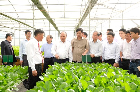 Thủ tướng Nguyễn Xuân Phúc đã thăm trang trại sản xuất giống, khu sản xuất rau thủy canh, khu sản xuất rau an toàn đạt tiêu chuẩn Vietgap của Công ty Phong Thúy tại tại Thị trấn Liên Nghĩa |