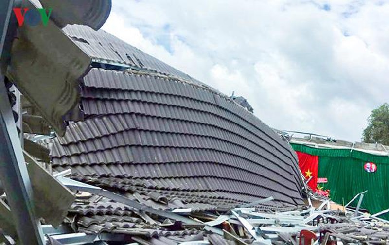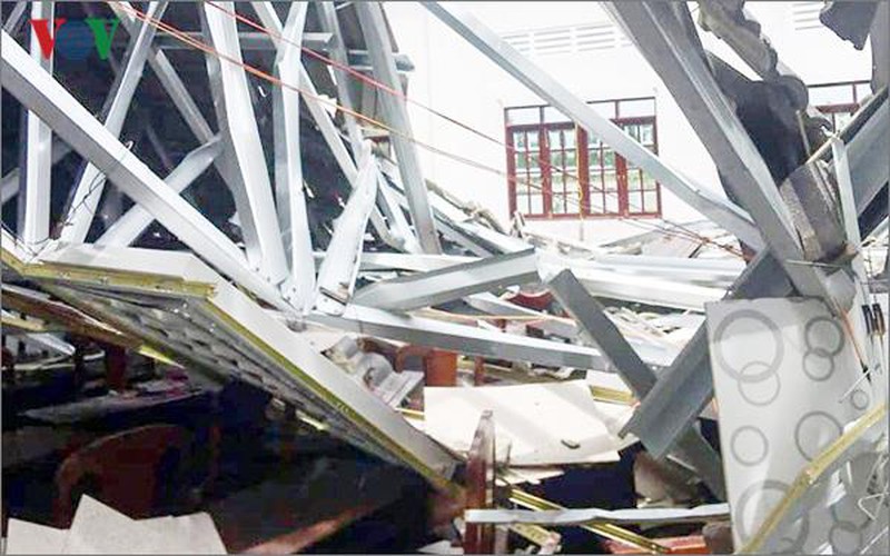 Hội trường thị trấn Ngã Sáu, huyện Châu Thành, tỉnh Hậu Giang bị sập. |