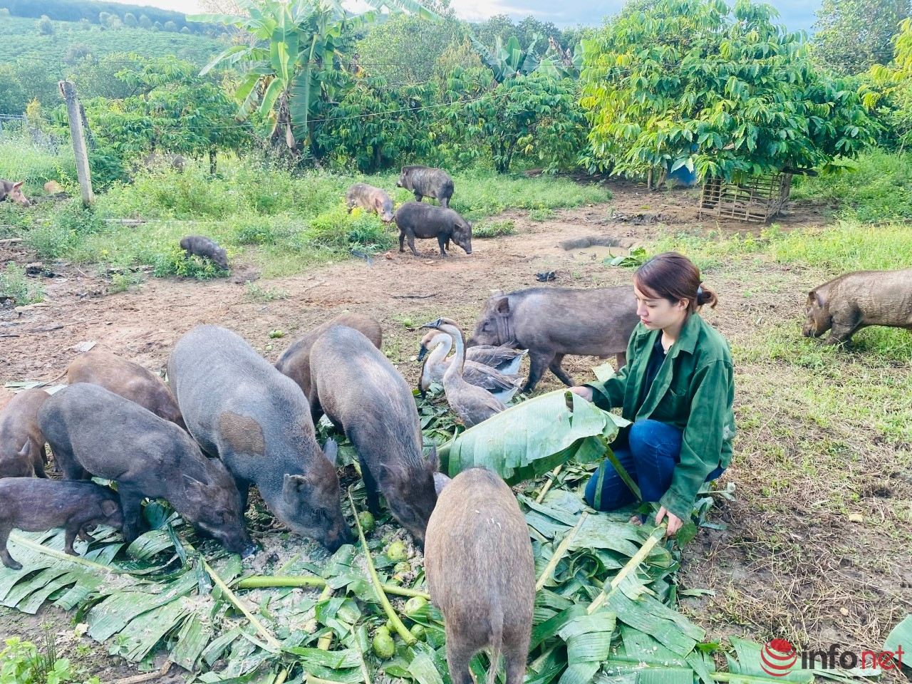 Heo bản của trang trại nhà Nhi nuôi kéo dài 1,5 - 2 năm mới có thể ra thành phẩm. Trong đàn heo luôn có đủ cả heo bố và heo mẹ để sinh sản, liên tục phát triển heo gối đàn, đáp ứng nhu cầu tiêu thụ cả sỉ và lẻ trên thị trường.