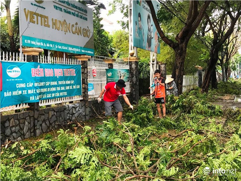 Còn tại huyện Cần Giờ, lực lượng chức năng đang dọn dẹp các cây ngã, gãy sau bão số 9 |