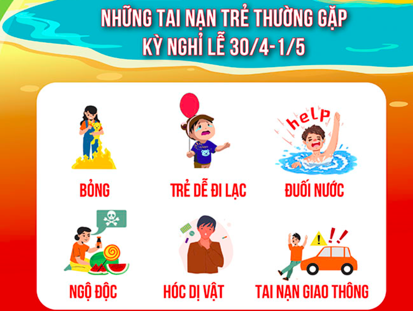 Hàng năm, vào mỗi dịp nghỉ lễ 30/4-1/5, số trẻ nhập viện vào Khoa Cấp cứu và Chống độc, Bệnh viện Nhi Trung ương vì tai nạn thương tích đều tăng cao hơn so với ngày thường. Đó là do trẻ nhỏ thường hiếu động, chưa có nhận thức, phản xạ bảo vệ bản thân. Nhiều trẻ vào viện với vết thương ngoài da, gãy xương, ngộ độc, bỏng, đuối nước,...