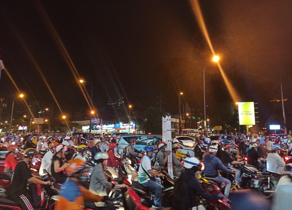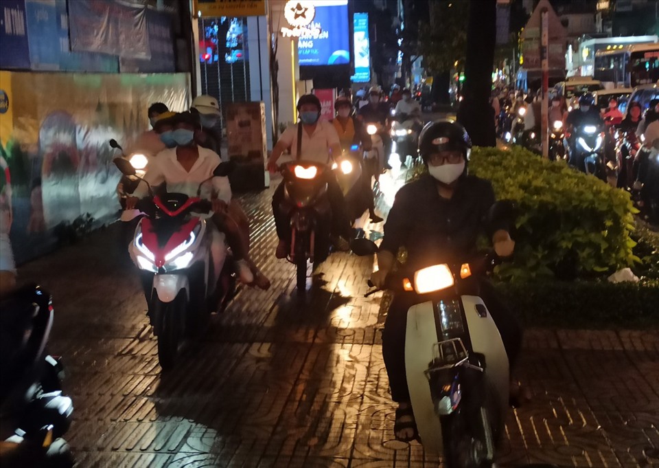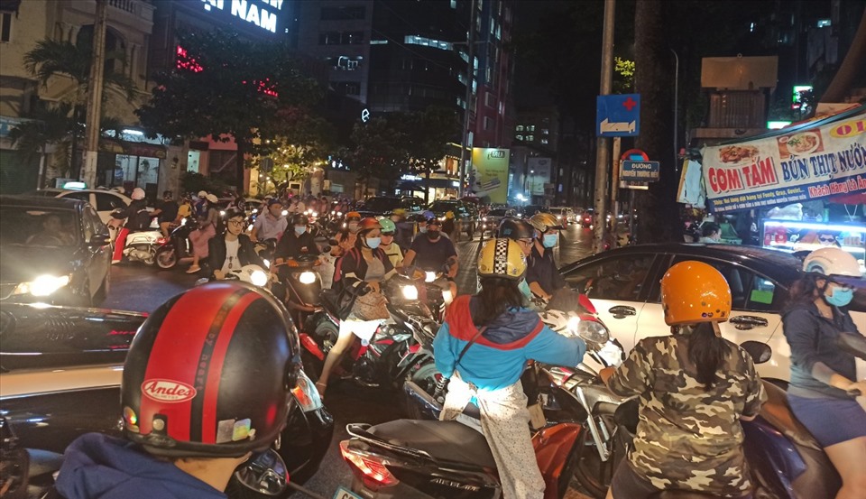 Dòng người di chuyển từ đường Nguyễn Thị Minh Khai rẽ vào đường Nguyễn Thượng Hiền (quận 3) xung đột với dòng xe hướng về quận 5 khiến giao thông qua khu vực trở nên hỗn loạn. |