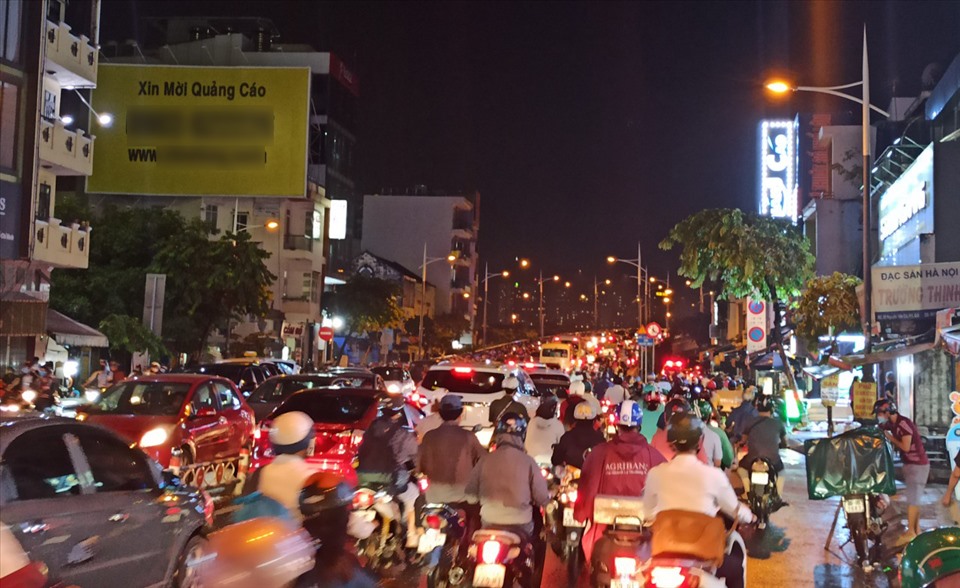 Sau cơn mưa chiều 23/11, nhiều tuyến đường ở TP.HCM rơi vào cảnh giao thông hỗn loạn, kẹt xe kéo dài.
