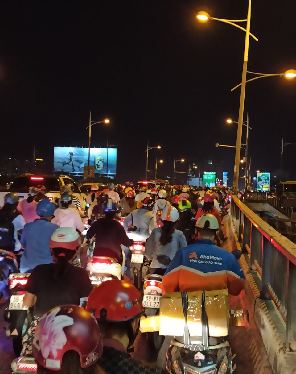 Tại cầu Nguyễn Văn Cừ, hướng từ quận 1, quận 5 sang quận 4, quận 8 và ngược lại nhiều thời điểm người dân phải "chôn chân" tại chỗ. |