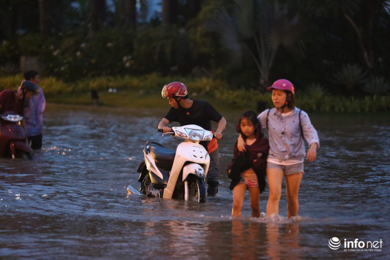 Ghi nhận của PV Infonet tại Thiên Đường Bảo Sơn tối ngày 21/7, nhiều đoạn vẫn ngập úng dù đã qua nửa ngày. |