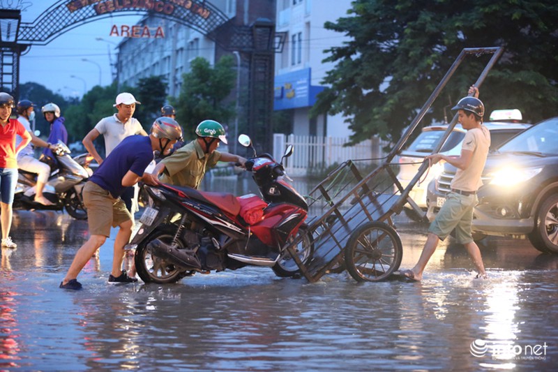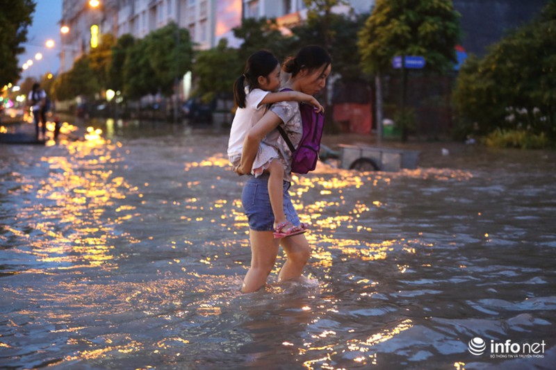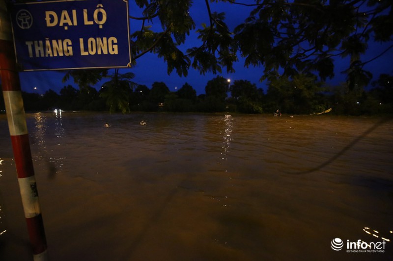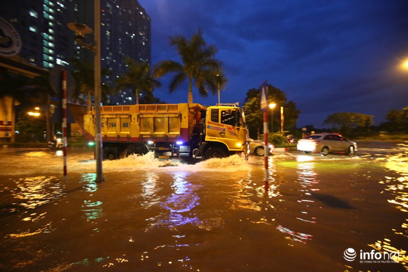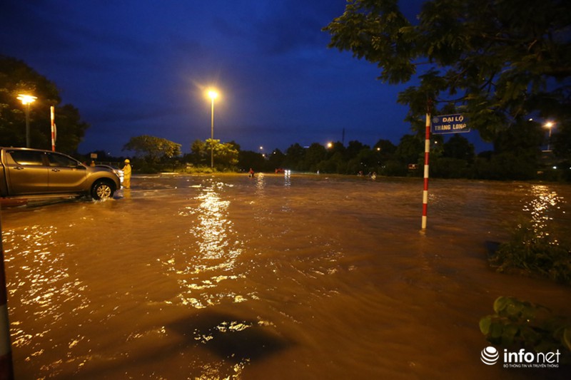 Trong đó, lượng mưa lớn nhất tập trung ở Quốc Oai. Vì thế, Đại lộ Thăng Long, đoạn ngã ba giao Lê Trọng Tấn và hầm chui dân sinh 3, 5, 6 bị ngập úng nặng nề và nước đang thoát chậm. |