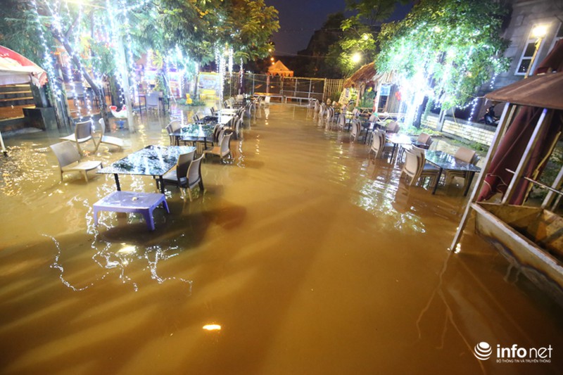 Nhiều nhà hàng, quán ăn bị dòng nước nhấn chìm cả ngày không rút. |