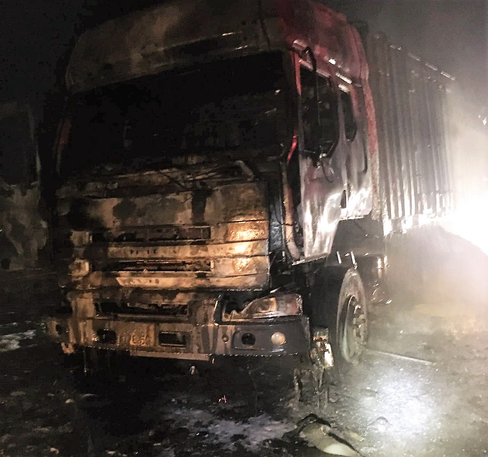 Đám cháy bùng phát từ cabin, sau đó lan sang phần thùng hàng phía sau.