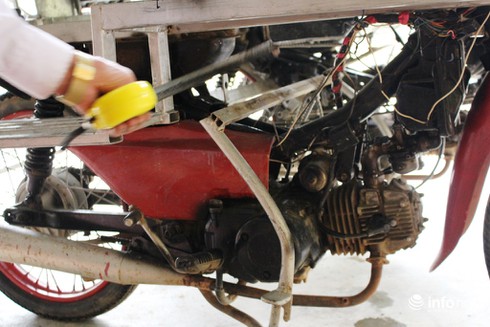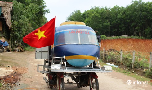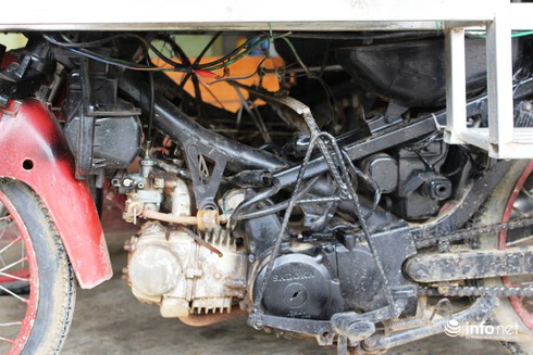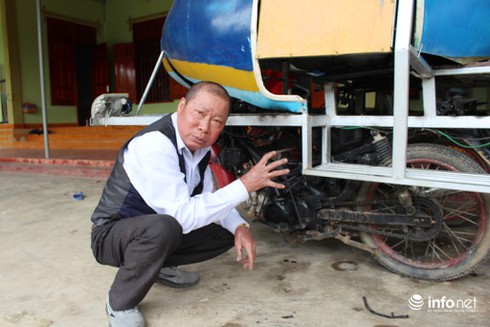 Ông Duệ chia sẻ: “Tôi phải thức trắng 10 đêm để mày mò, thiết kế nên chiếc xe. Tổng chi phi làm chiếc xe này chưa đầy 20 triệu đồng”.
