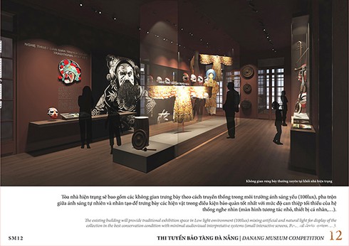 | Studiomilou Singapore lưu ý, nhiều hiện vật trưng bày trong Bảo tàng là tài liệu giấy, đồ dệt may và các hiện vật tổng hợp. Điều này đặt ra vấn đề bảo tồn theo thời gian và nên được giải quyết từ bây giờ. Do vậy, thiết kế của Studiomilou Singapore đề xuất tất cả các không gian “triển lãm” và “không triển lãm cho công chúng” được kiểm soát ánh sáng (dưới 150 Lux) và kiểm soát khí hậu nhiệt đới (23 độ C với độ ẩm 65%). Về xây dựng, giai đoạn 1 sẽ phá dỡ khối nhà ngang 3 tầng thuộc công trình 42 Bạch Đằng; cánh nhà phụ trợ phía nam hội trường HĐND (tổng diện tích phá dỡ khoảng 1300m2). Cải tạo nhà 42 Bạch Đằng thành không gian trưng bày, không gian công cộng thuộc Bảo tàng Đà Nẵng (tổng diện tích cải tạo khoảng 2400m2). Xây dựng cánh nhà mới tiếp giáp phía Tây nhà 42 Bạch Đằng. Cải tạo toàn bộ hệ cảnh quan xung quanh nằm trong ranh giới giai đoạn 1 của dự án (tổng diện tích cải tạo khoảng 4200m2). Giai đoạn 2, phá dỡ khối nhà ngang 3 tầng số 31 Trần Phú (tổng diện tích phá dỡ khoảng 500m2), chuyển đổi công năng các sàn của khối nhà này thành không gian trưng bày tương tác; không gian phụ trợ bảo tàng. Di chuyển khu văn phòng quản lý qua nhà số 44 Bạch Đằng. Bổ sung một số không gian dịch vụ hướng về phía sông Hàn. Các không gian sử dụng làm văn phòng ở giai đoạn 1 thuộc tòa nhà 42 Bạch Đằng sẽ chuyển đổi thành các không gian trưng bày thường xuyên (tổng diện tích cải tạo khoảng 2400m2). Cải tạo toàn bộ hệ cảnh quan xung quanh nằm trong ranh giới giai đoạn 2 của dự án, bao gồm cảnh quan lối tiếp cận qua Thư viện tổng hợp Đà Nẵng (tổng diện tích cải tạo khoảng 1100m2). |