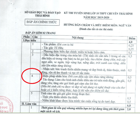 Và câu hỏi số 4 trong phần I, quan điểm của Sở GD&ĐT đã được thể hiện trên hướng dẫn chấm thi và đã có hướng dẫn cụ thể cũng như biểu điểm chấm được đăng tải công khai trên cổng thông tin của Sở. Hướng dẫn chấm thi này đảm bảo khách quan và đánh giá được năng lực của học sinh”.