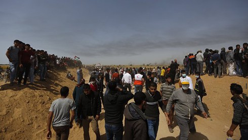 Những người Palestine đã đốt lốp xe và ném đá vào binh sĩ Israel qua hàng rào biên giới. Trong khi đó, phía Israel đáp trả bằng hơi cay và đạn thật.