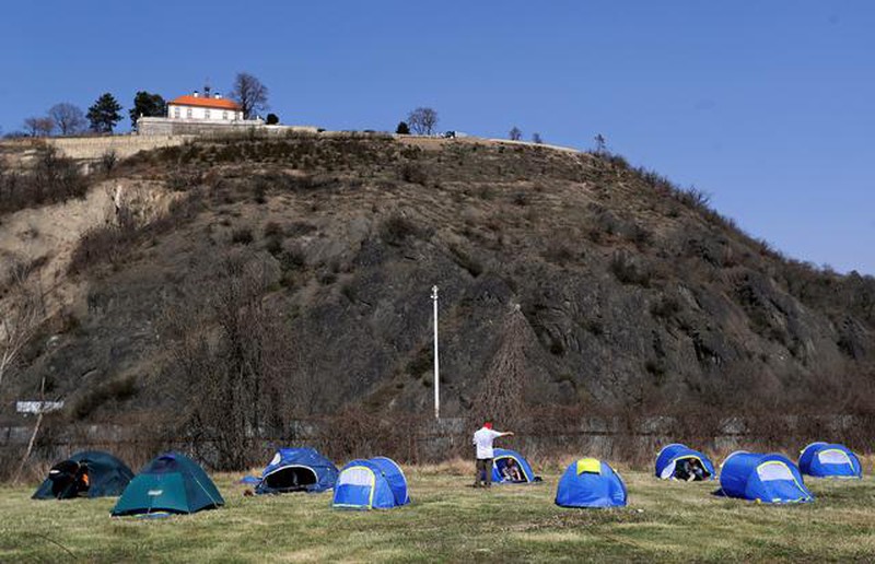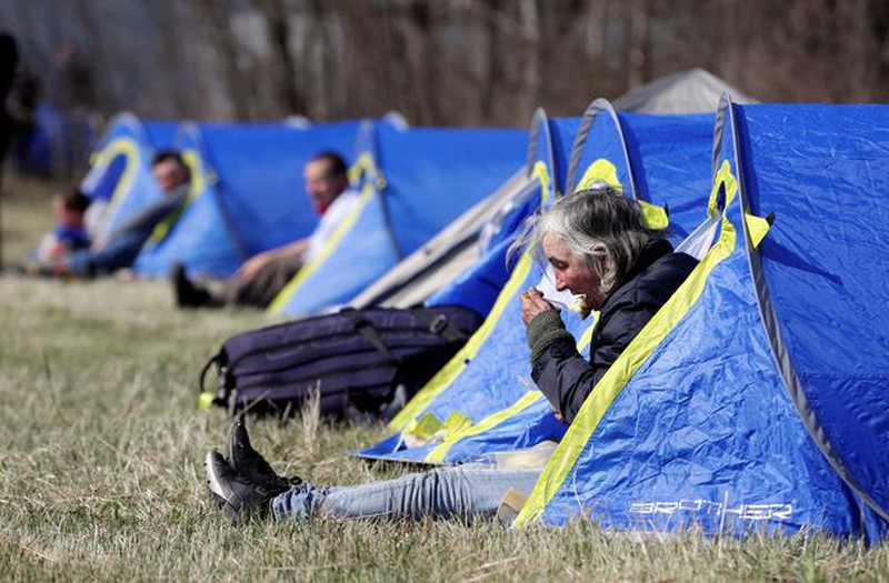 Những người vô gia cư ở Prague, CH Czech được một tổ chức từ thiện dựng lều để ở nhằm phòng tránh lây nhiễm virus corona chủng mới. |