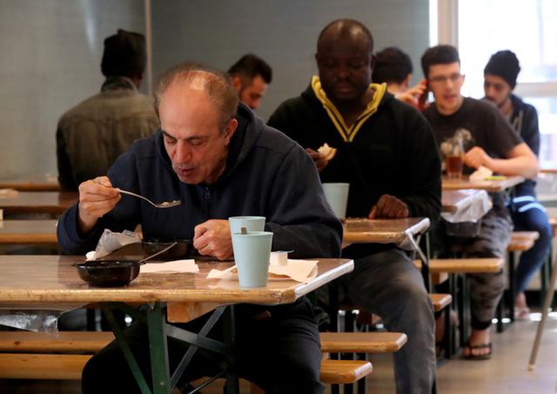 Người vô gia cư được cung cấp thức ăn tại Trung tâm Chữ thập đỏ ở Brussels, Bỉ. |
