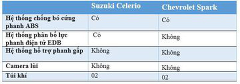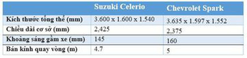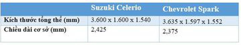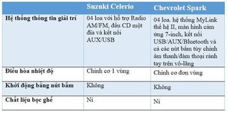So sánh xe Suzuki Celerio và Chevrolet Spark 2018